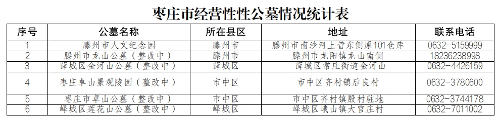 经营性公墓信息统计表